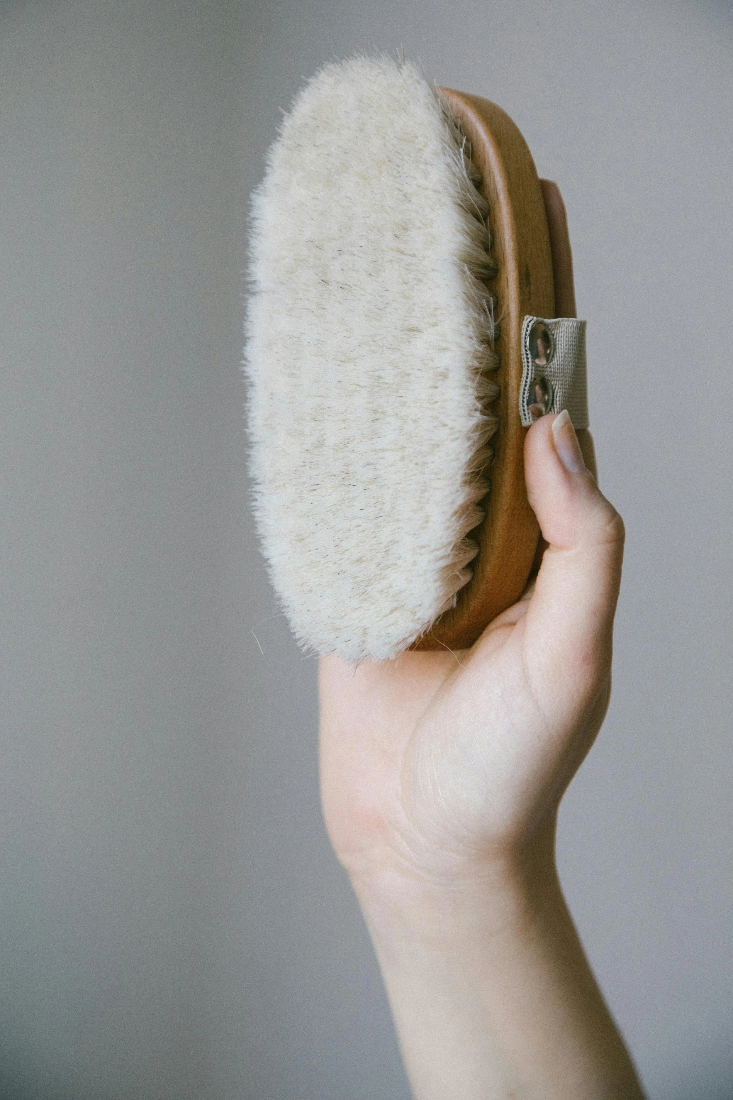 Use a soft, natural bristle brush on dry skin.
